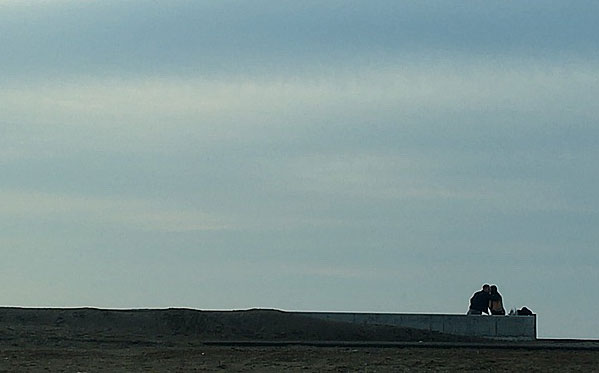 着いたのが朝の4時40分過ぎだったのだけど、恐らく20代後半くらいと思しき男女が波打ち際でとても楽しそうにボールで遊んでいて、僕はもっと別の方を散策していたのだけど、一通り見て回って満足したので駐車場から車を出して帰ろうと思いきや…