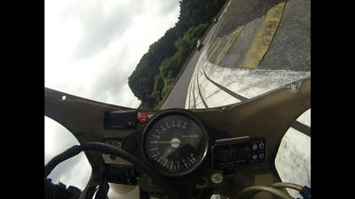 このコーナーで白線の上に前後タイヤをガッツリ乗せていく真っ黒い人を知っているし、乾いていれば白線に乗っても滑らないっていうのは頭では判るのだけど、身体が拒絶するんだよなぁ…。