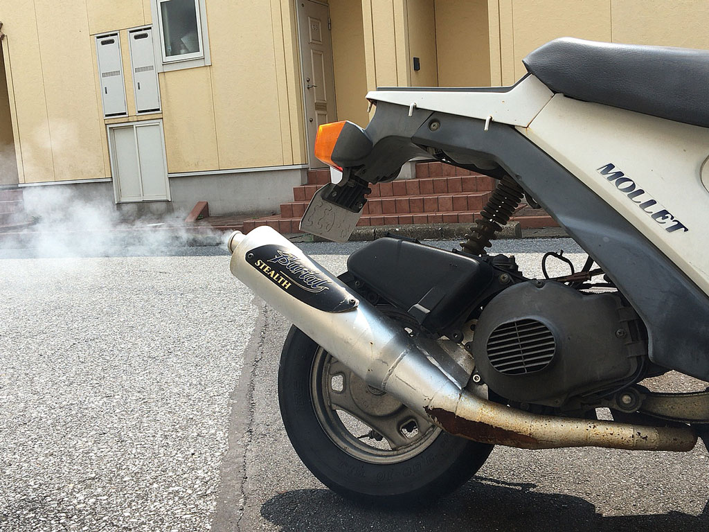 暫く乗ってなかったっつぅかエンジンを掛けていなかったので、5~60発くらいキックしないと掛からないかな…と思っていたのだけど、意外にも10発くらい蹴っただけで掛かった!