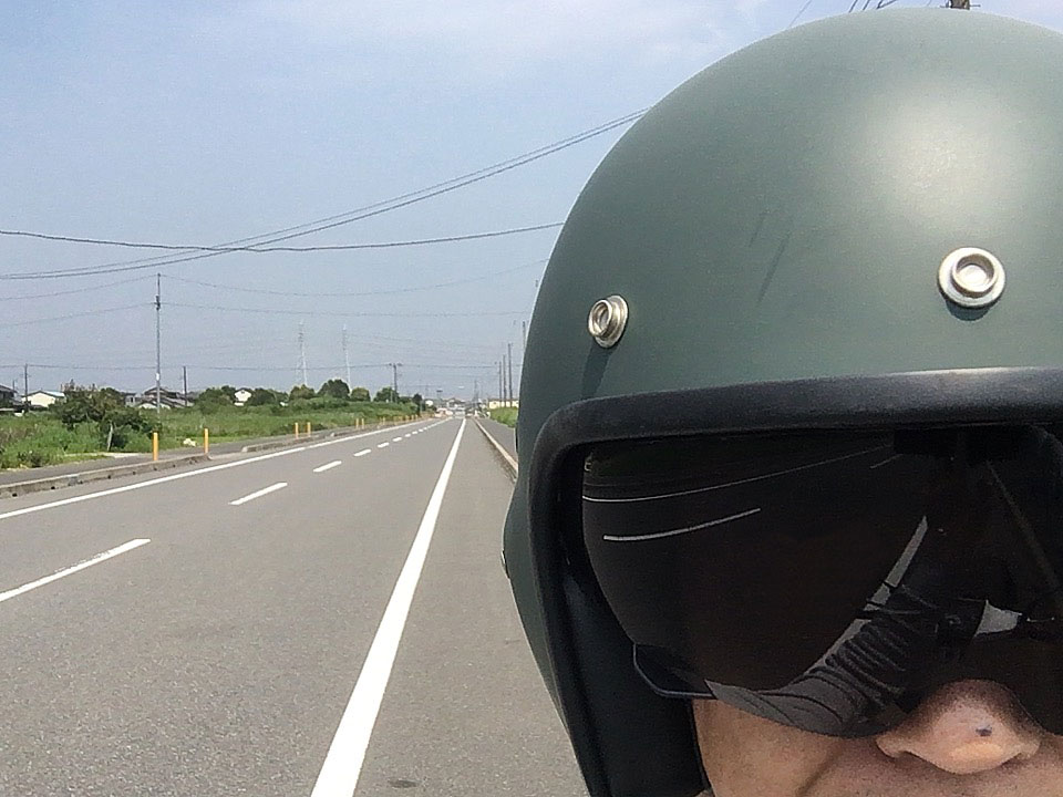 もちろんウソなんですけども、今日は久しぶりに面白ジェットヘルに後から着けたバブルシールドみたいなやつを取り外して、元の飛行機のパイロット風のスタイルに戻してみたんですよ。