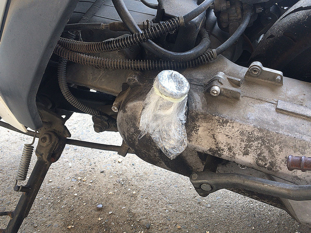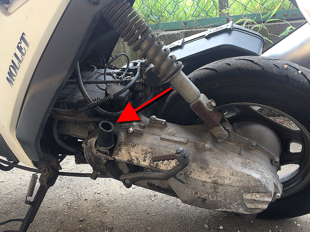 そのうちクランクケース内に風をこれでもかと導入してやろうと思ったまますっかり忘れてるとこなんですけども、ここから雨が入ったところでリアエンドの下側の穴から水は出てく。