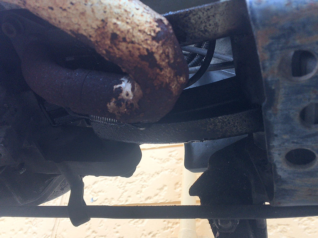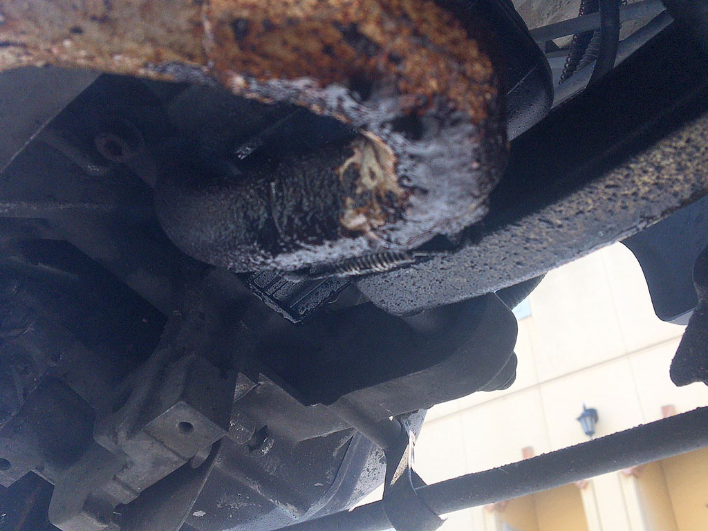 我が家からはMolletで5分も掛からない場所にあるのだけど、30分くらい回り道してから到着して、また下からのぞいて見た感じ、エキパイの辺りに付着していた水とオイルが混ざった良く判らない何かは綺麗に焼けていなくなっていた。