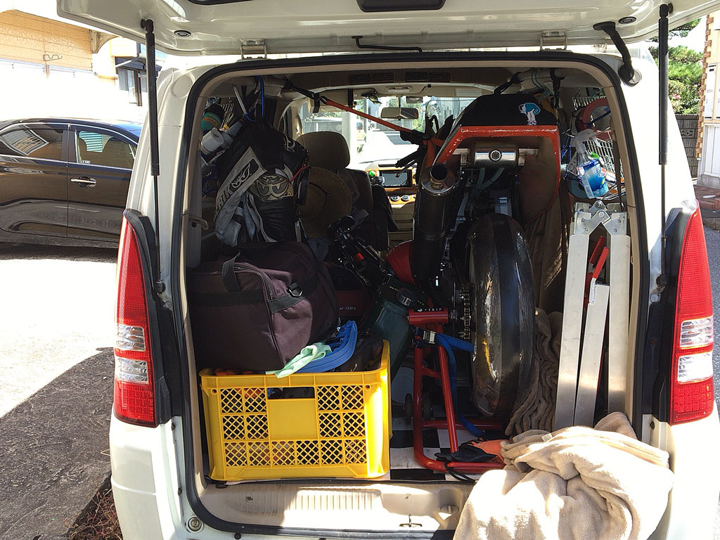 で、荷室にはVFRとラダーレールと工具箱。それから予備のタイダウンベルトが詰まってる箱が残っている状態で、広々空間が出来上がった。