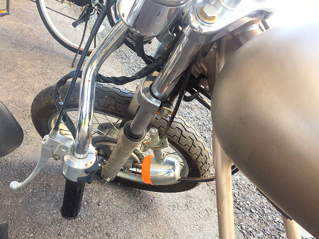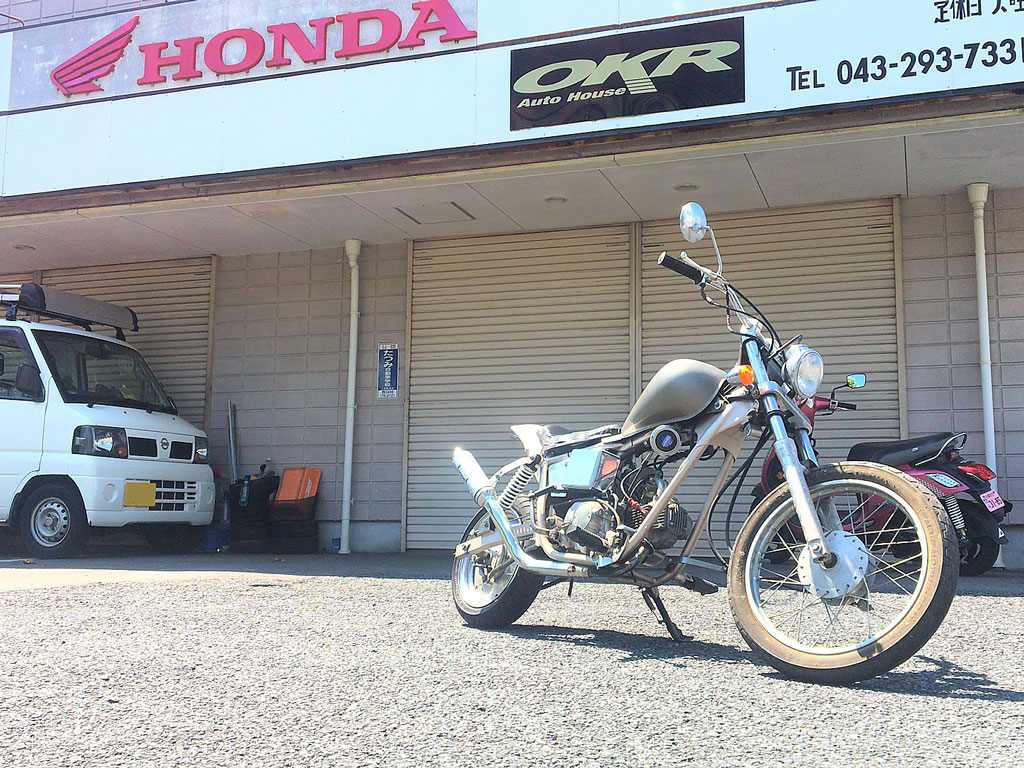 で、社長にざっと見てもらって、最低限これだけは替えとこうっていうパーツを注文してもらいつつ、ひとまずそのままJazzをOKRで預かってもらうことに。僕は昔スティードに乗っていた時もフラットバーが好きだったので、今回のJazzもそういう仕様にしようと思うのだけど、短いフラットバーに交換したら積んで帰れるので、注文したブツが届いたら諸々組み込んで家に持ち帰って、細かいところは家でコツコツやる方向で♪