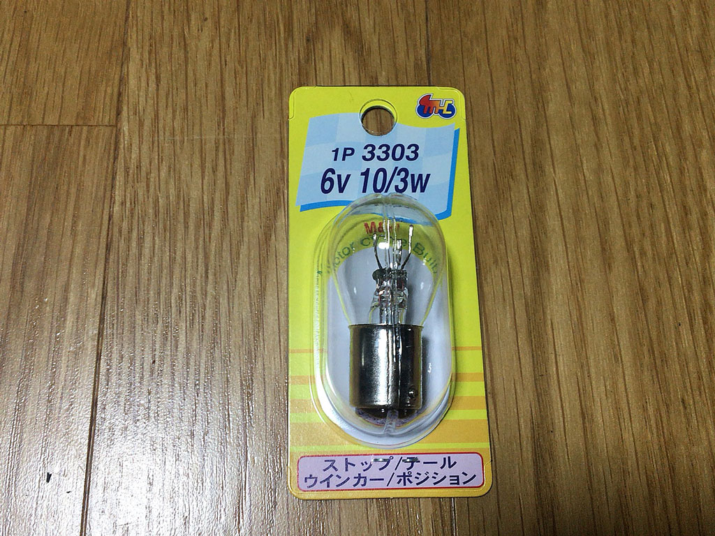 我が家にやって来たJazzはこの週末でひとまず公道走行可能な状態にはなったし、今朝ナンバーも取ったので後は自賠の加入をすればいい感じなのだけども、ナムさんがオマケでつけてくれたテールランプには12v球が入っているので、6vの球が必要だった。