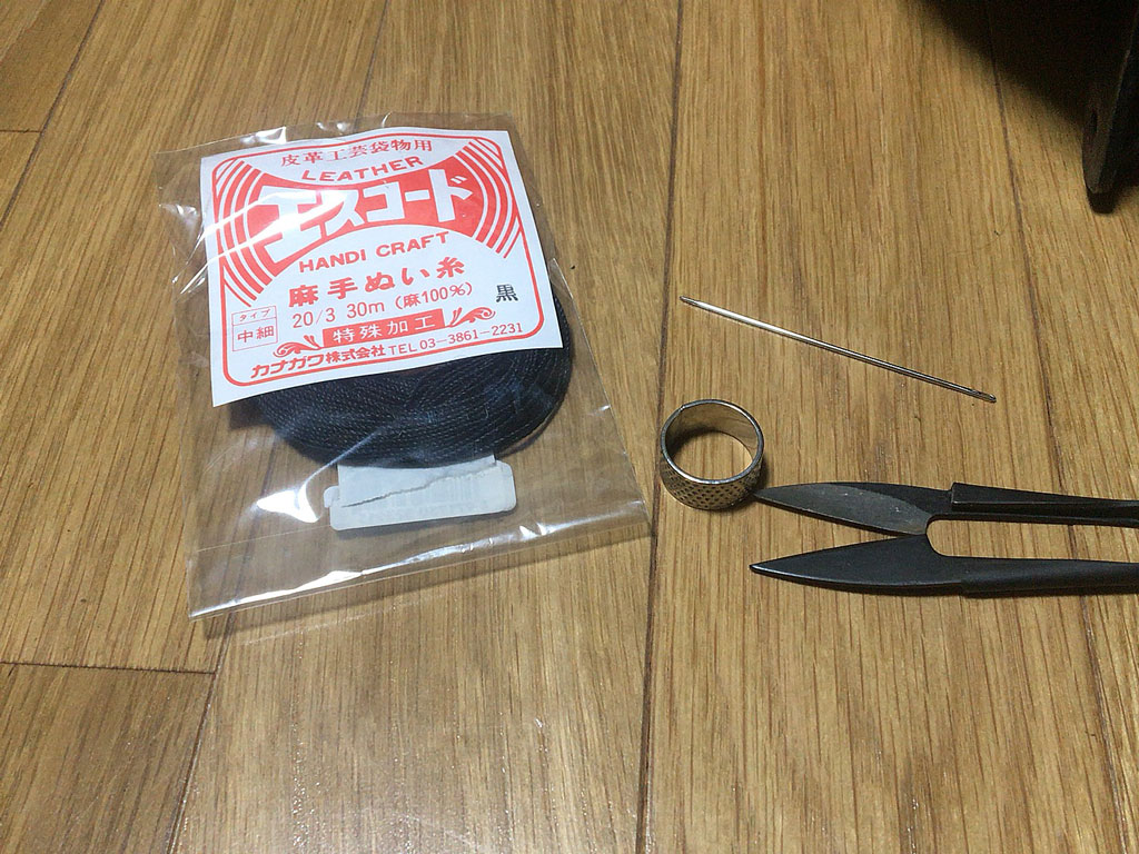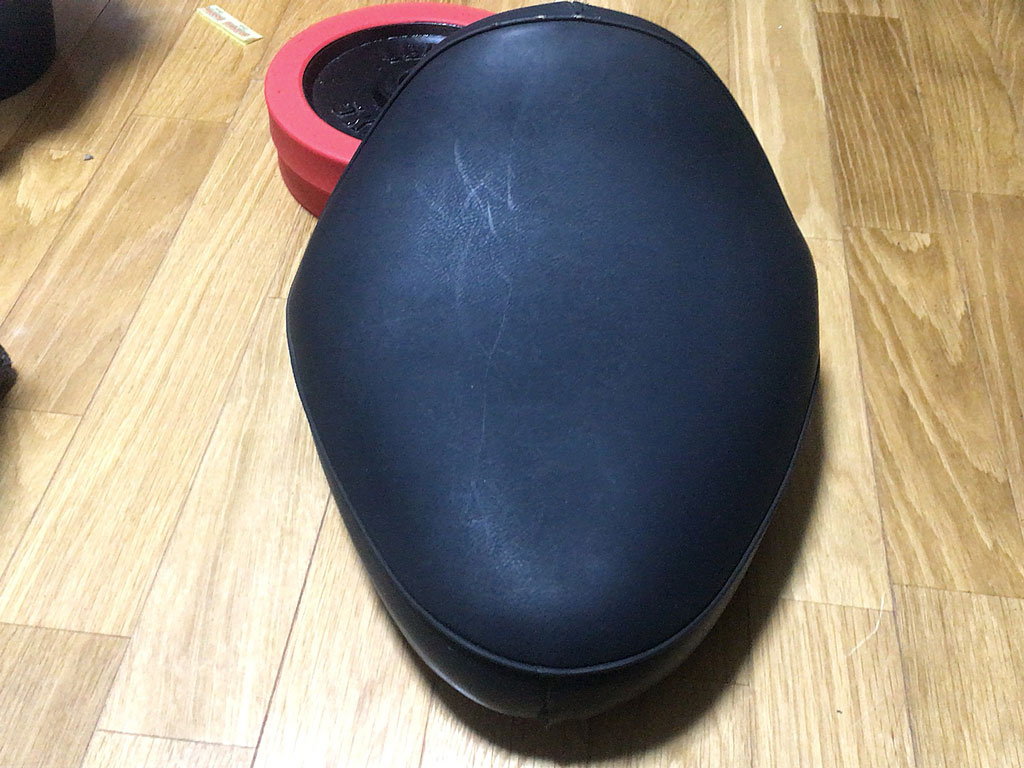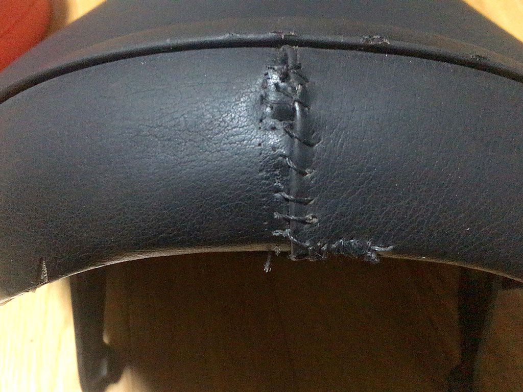 古いバイクの中古部品、それも常に身体に触れる部分の部品で、買値を考えてみれば状態は良い方だと思うのだけど、後ろの縫合部分が開いてしまっている。