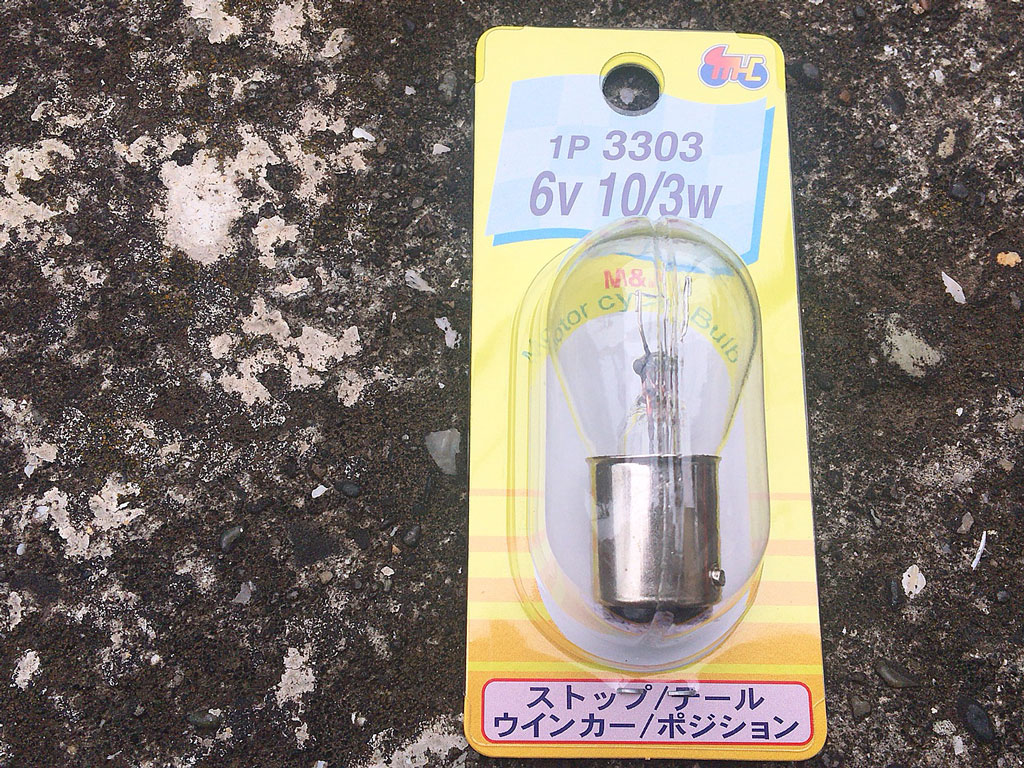 まずフロントウィンカーはナムさんお手製のFRPステーをうっかり折ってしまって、OKRに入庫してるエンジンブローしたマグナ50からウィンカーごとステーを強奪してつけたので、球が12vなのを6vに戻した。