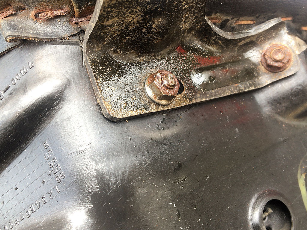 そんじゃぁナット2個で留まってるだけのもんだし、元のシートのステーと交換しようと思ったらば、買って来たシートのその部分、あまりにも錆びすぎてどうにもならん…。