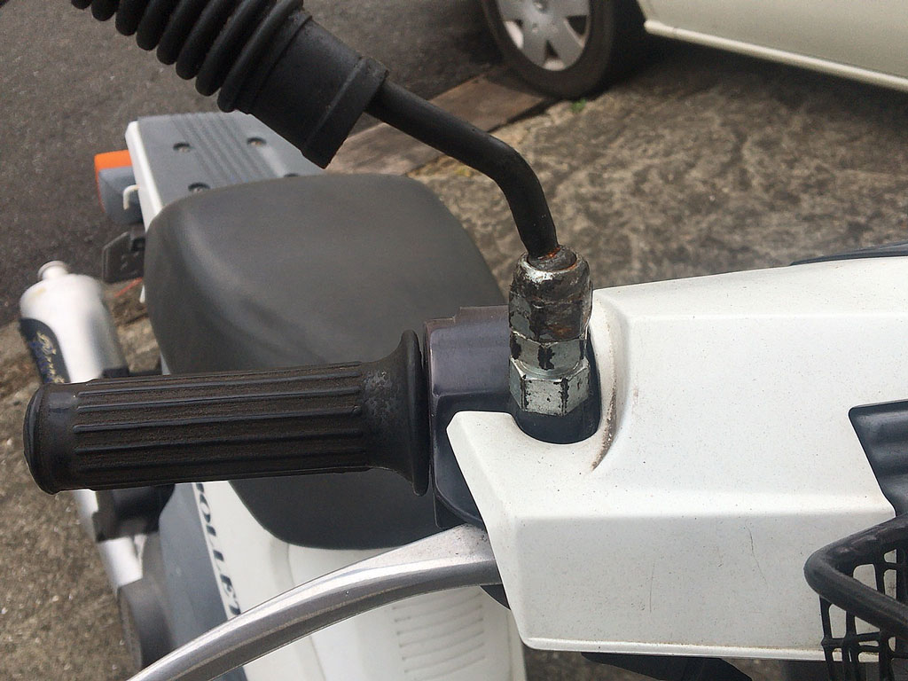 Mollet V100のミラーは素朴な感じがあの風貌に良く似合ってるし、後ろも良く見えるので何の不満もないのだけど、そろそろくたびれてきてるならMolletにもミラー買うかな…と思いつつ、ミラーの正逆と大きさを調べようと思ってブーツを上げてみたんですよ。