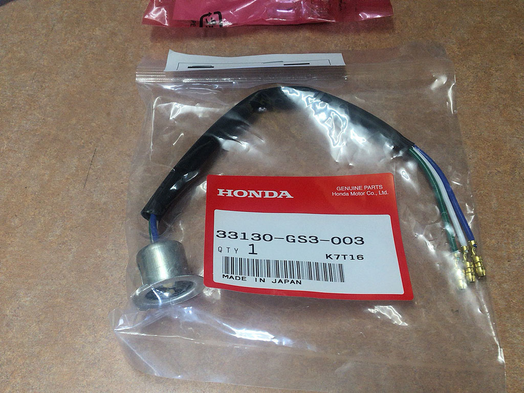 そんなことは置いといてですね、先日ヘッドライトのロー側と右前のウィンカーが点かなくなってしまったJazzなんですけども、ヘッドライトのソケットと近所の2りんかんでは6v3wしか在庫していなかった6v8wの電球を取り寄せてもらえるように頼んでおいたのを、アルバイトが終わってちょっと用事を済ませた後でOKRに受け取りに行ってきた。
