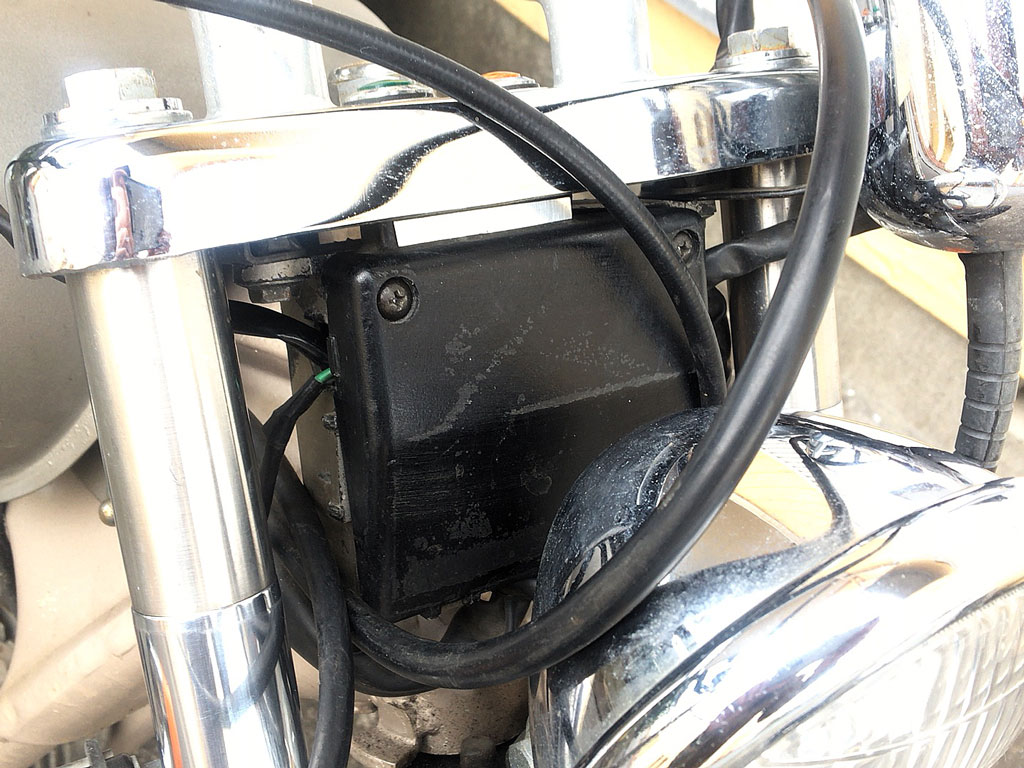 ソケットを交換するのにギボシをズボってしないといけないので、ライトの後ろのギボシ密集地帯を隠してる謎の黒いお弁当箱を開けます。