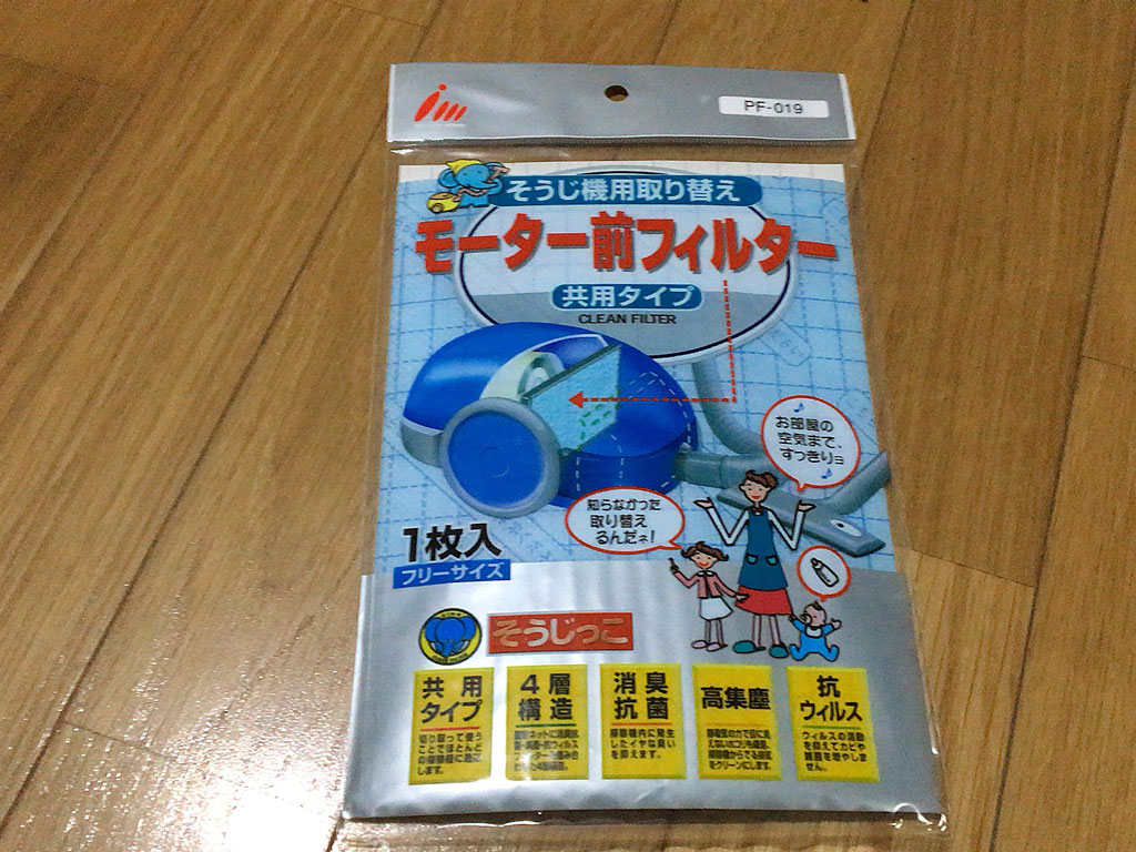 フィルターのアップの写真なんかアップするのも憚られる勢いで小汚いので割愛しつつ、近所のケーズデンキでまた汎用の掃除機用フィルターを買って来た。