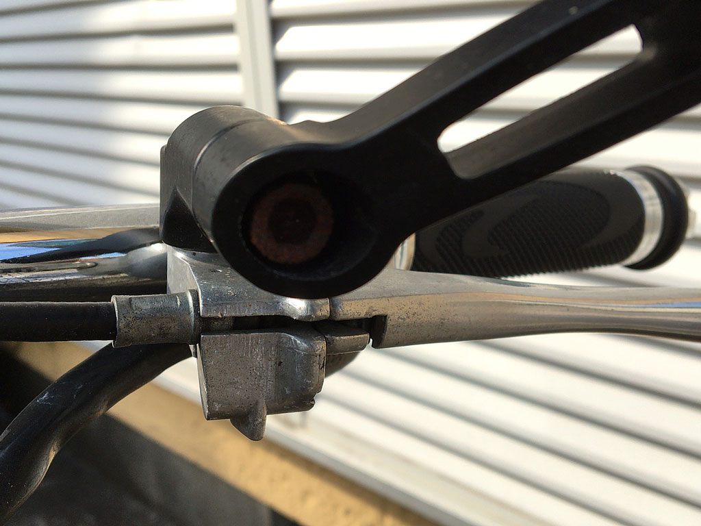 ワケアリキズモノのB級品なだけに、この部分は良くホームセンターで見かける鉄素材の黒く塗っただけのボルトだったりするので、ビックリするくらい真っ茶に錆びている。