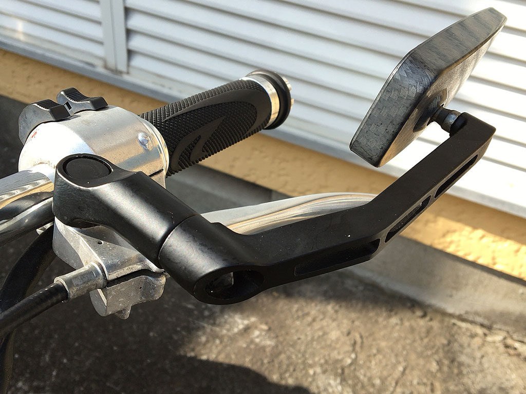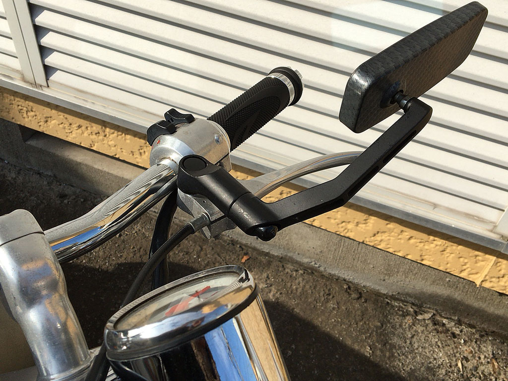 恐らくそのままでも法的には問題ないんじゃないかと思うのだけど、僕はビビりなので公道では特に極力死角をなくしたいっていうのと、変なトコだけ几帳面なA型なので左右対称に出来るものならそうしておきたいっていうのもあって、ヤフーショッピングでワケアリキズモノのミラーを送料無料の900円弱っていう激安で購入した。
