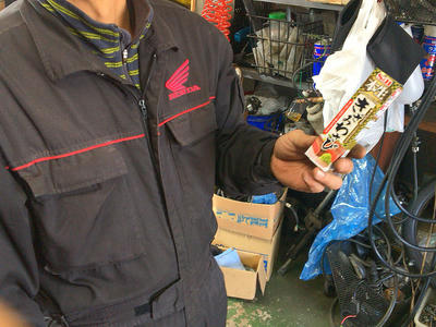 今日は社長がちょっと苦労してフォークのロッドを外してくれた時、『やったー!社長ありがとう!!スッゲー嬉しい!さすが社長だっ!!!じゃぁもう眠いから帰るね♪』っていう勢いで自己中を遺憾なく発揮し、その上『社長、工賃!』っつって取り出したのがこれ。