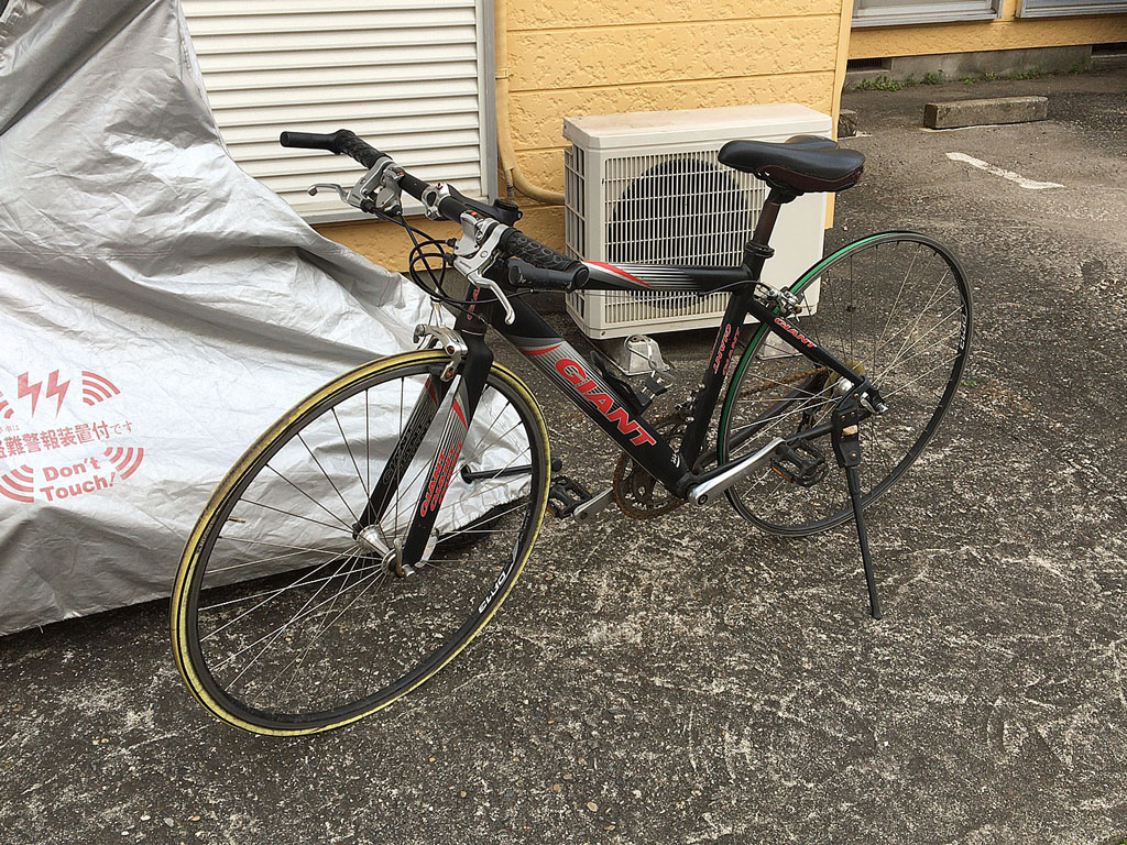 これはかれこれ10年ほど前、あにはしが買ってきたGiantのFCR2っていうフラットロードのエントリーモデルで、確か半年だか1年だかそのくらい乗ってからTREKのロードを買って、それからはたまにあにはしの嫁が乗ったりしていた様子だけど、基本的に実家の元僕の部屋だった物置の中に入れられたままになっていた。