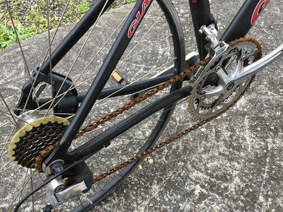 他はボルト関係の錆とか結構キテるけど、走って止まるのには問題ないし、特に後ろのギアの変速がおかしなことになってるんだけど、その辺は調整で戻るくらいなもんだと思う。