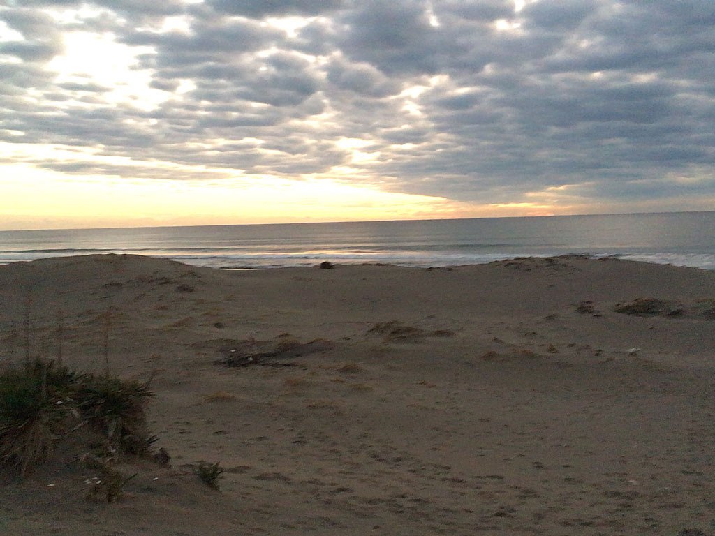 っつぅことで、多分白子海岸の辺りだと思うのだけど、公園だかレクリエーション施設だかの無料開放されていた駐車場(ガラガラ)に車を入れて、徒歩で海に出られる場所を探す。