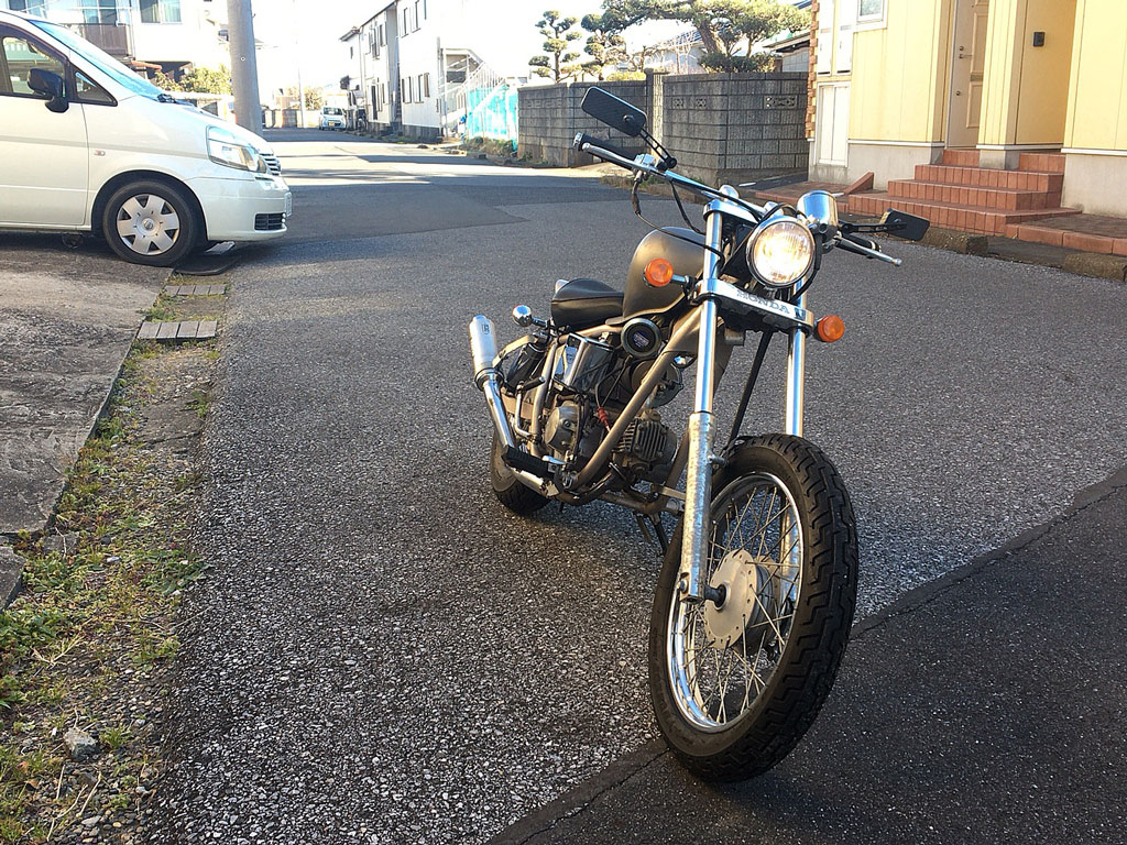エンジンを掛けるのが久しぶりなのと今朝の気温の低さとで、チョークを引いてても暫くエンジンが掛からなくて、だいぶキックしまくったけど、掛かってしまえば信じられないほど調子良くて、アイドリングもバッチリ安定、吹けも上々♪