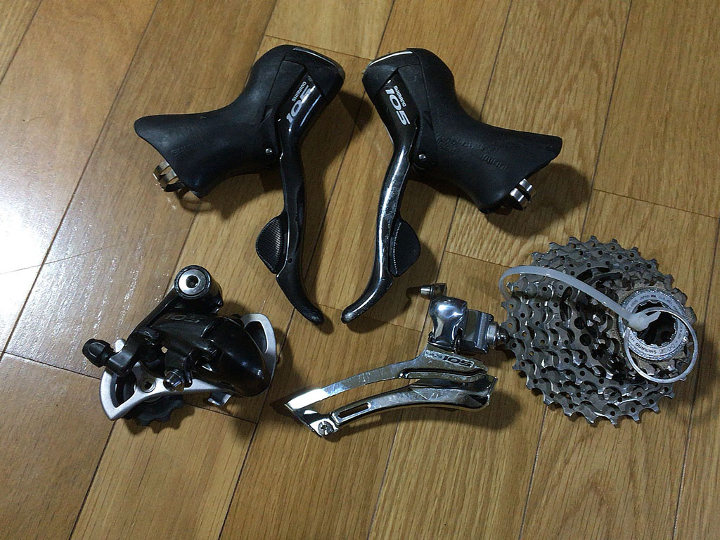 左右のSTIレバーと前後ディレイラー、リアのカセットスプロケットのセットで10s化。