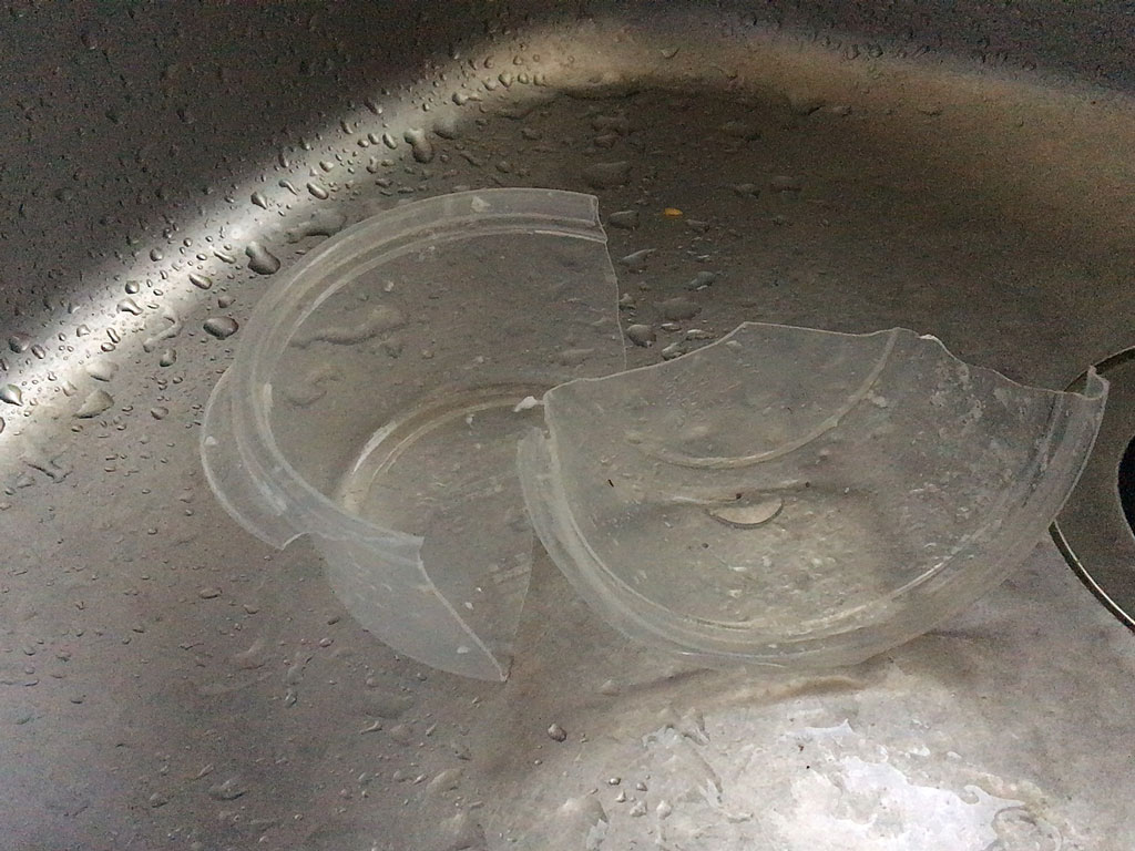それも、グシャっとなったりパカっとなったりしたのではなくて、お尻のところに親指大の穴が開くっていう不思議な割れ方をした。