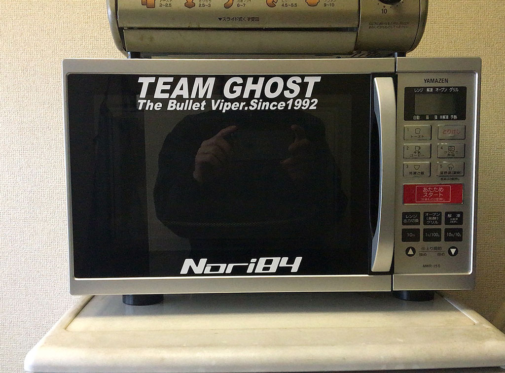 で、買い物から帰って、先日卵爆弾テロ事件で死亡した電子レンジに代わって、昨日ロックンロールライダースのジョージさんからいただいてきた電子レンジをセットした。