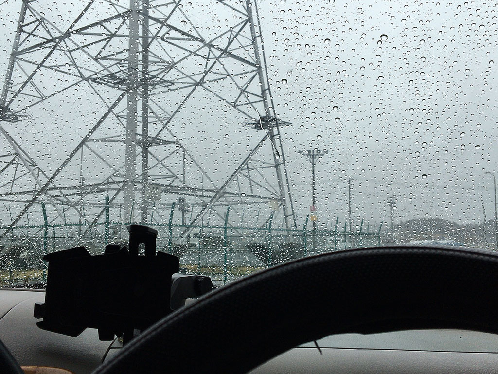 ガラコがバッチリ効いてる時は雨粒が均一なのだけど、粒がまばらになってくるとある程度速度が上がらないと飛んで行かなくなって、そうなって暫くすると水を弾かず粒にならないようになって、ガラコが力尽きる。ような気がする。