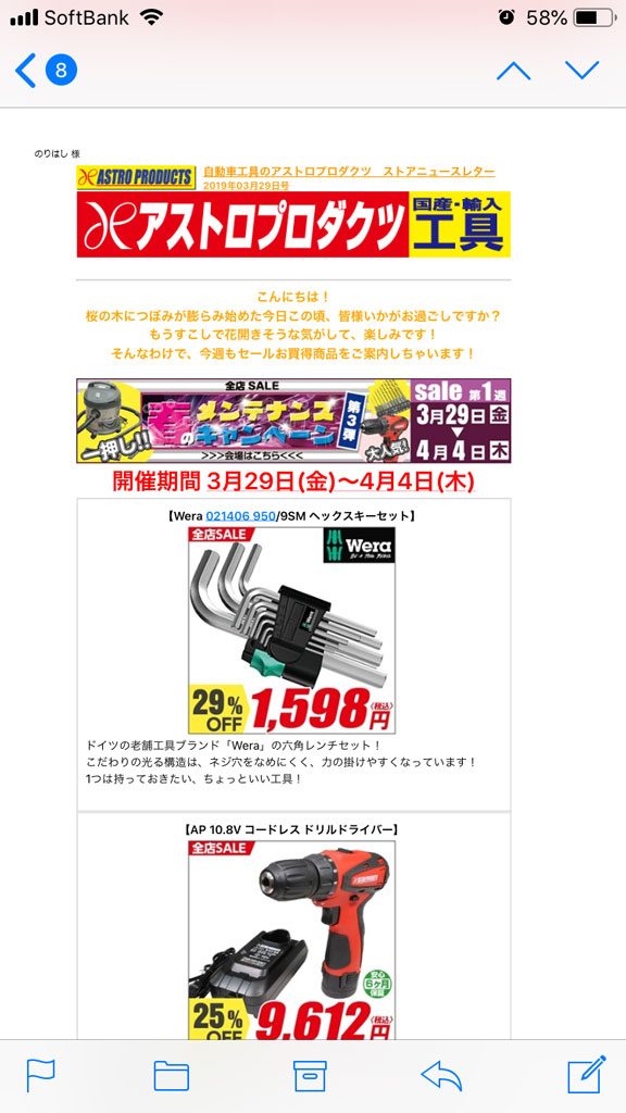 昨夜を乗り切れば週末はお休みという1週間の終わり、アルバイトの短い休憩中にメールをチェックしていたところ、アストロプロダクツのメルマガが来ていた。