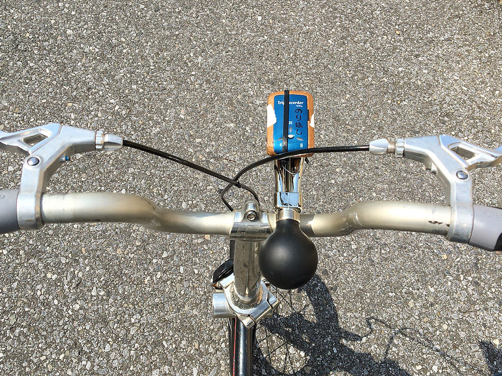 ちゃりはしのチャームポイント、パフパフに貼り付けて家のすぐ近くの歩道のポールを8の字にグルグル回って帰って、Lap+で取り込んでみる。