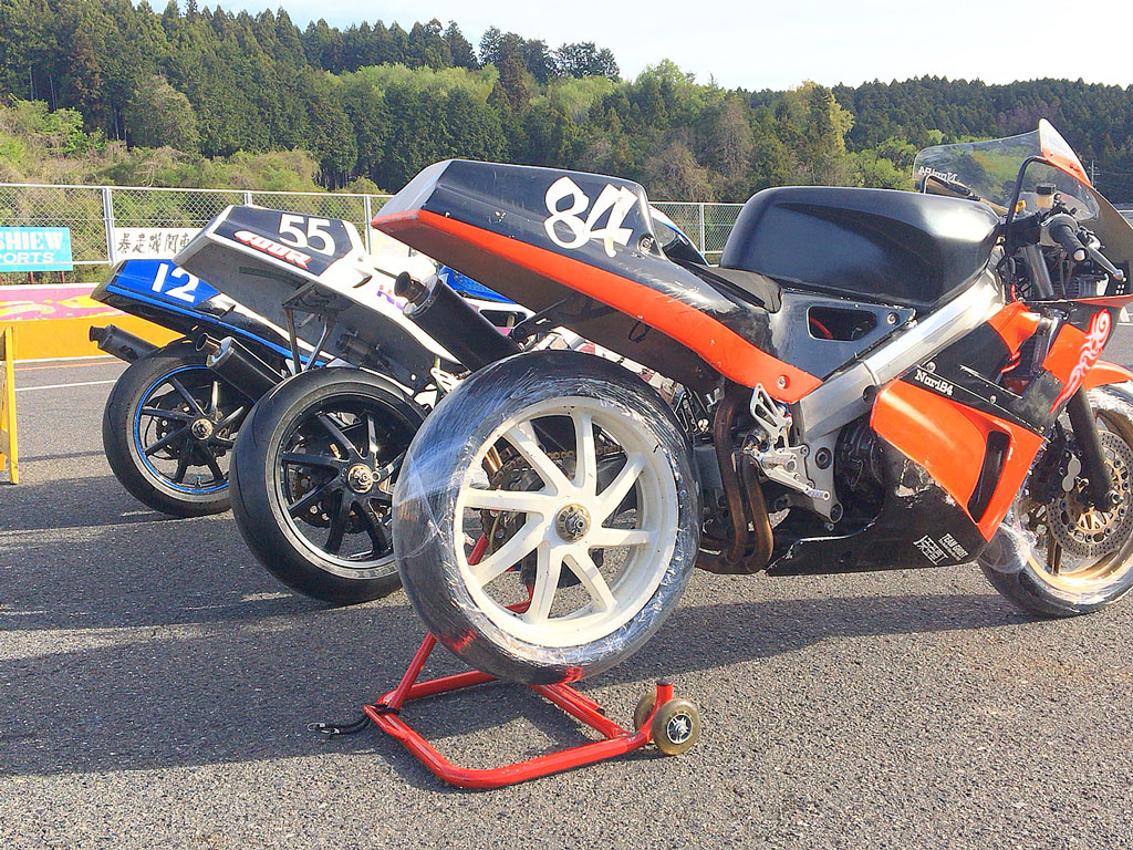 結局練習までに20分弱しかウォーマーを当てられずにコースインして、徐々に表面を慣らしてペースを上げていくのだけど、立ち上がりでリアがツーーっと流れてグリップ感が掴みづらいな…っていうのがレーステックRRの最初の印象。