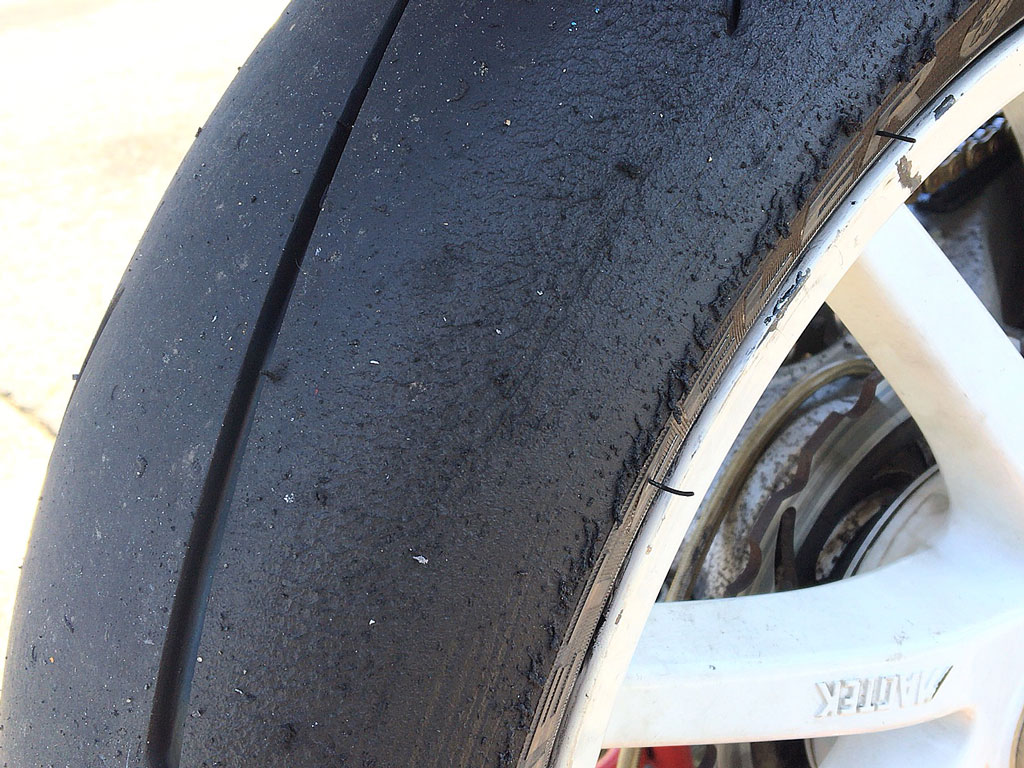 今日はたなますさんも同じような理由でリアをレーステックRRを履いてたんですけども、たなますさんのリアの右にもまったく同じ症状が出ていた。