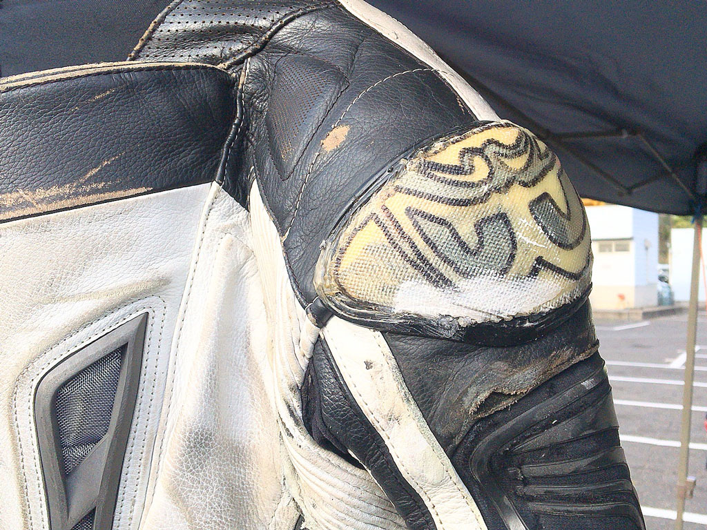 なので、近頃のツナギは肩に樹脂やチタンとかのプロテクターってういかスライダーっていうか、そういうものが着いているものが多い。