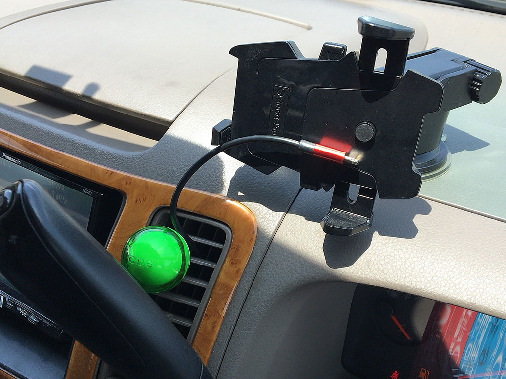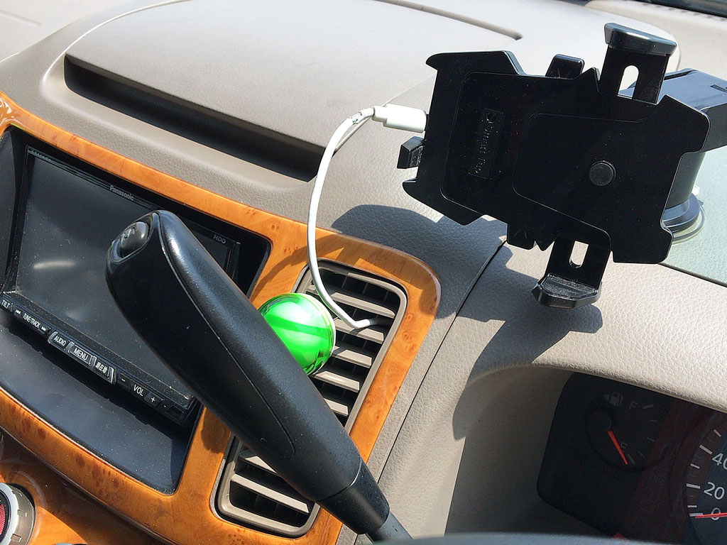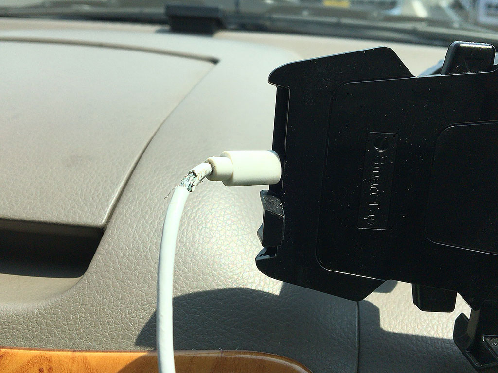 そんな訳なので、セレナのダッシュボードにはiPhoneのスタンドをくっつけてるのだけど、ちょっとした距離になるとiPhoneのバッテリーがなくなってしまうので、充電しながら使いたい。