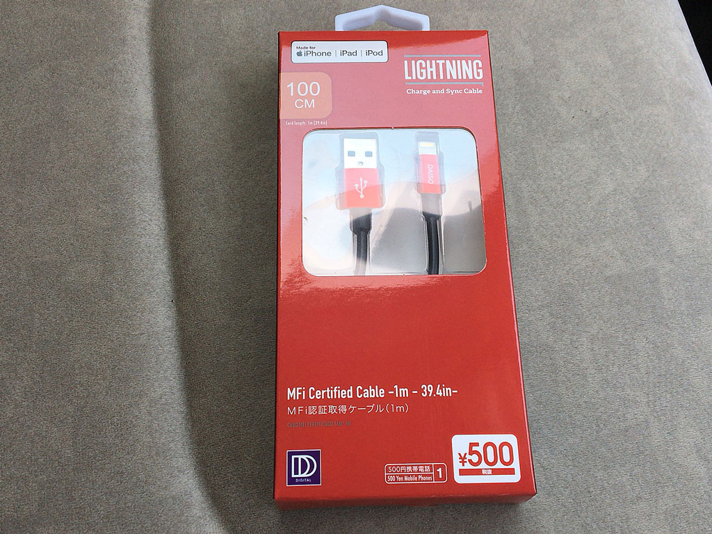 ところがここ数日いよいよ断線したらしく、ケーブルを接続しても充電開始されなかったり、開始されてもすぐに認識外れたりしてしまうようになって不便なので、近所のダイソーに行ってきた。