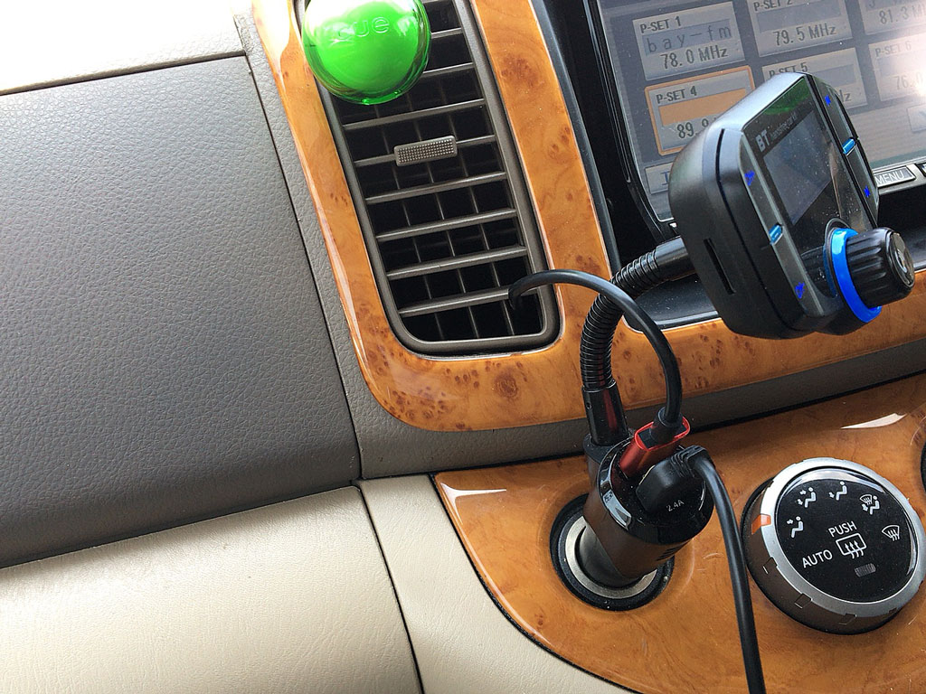 っつぅことで、シガーソケットにくっつけたFMトランスミッターのUSBポートから助手席側のエアコン吹き出し口に入って…