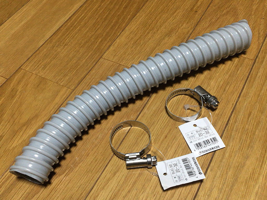 そんなこんなでせっかくのお休みなので、何か建設的に過ごそうと思ってですね、Molletで京葉スピードランドとか走りに行っちゃおうかな…とかチラッと思ったのだけど、肋骨が折れてる疑惑の今はロキソニンとボルタレンのコンボでもさすがにサーキットは厳しいかな…っつぅんで、代わりにちょっと工作でもすっかな…と、ホースとそれを留めるバンドを買ってきた。