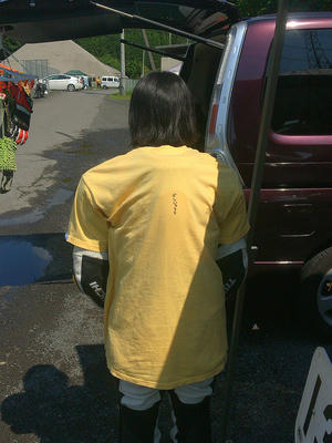 なので、今日レースデビューの2号ももちろん黄色Tシャツを着るのだけど、黄色Tシャツは良く背中に『優しく抜いてください』的なアピールを書いている人を見かける。