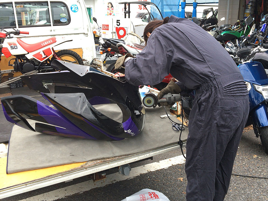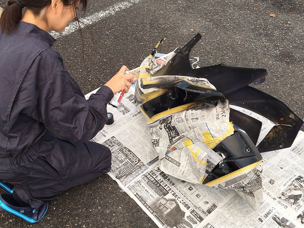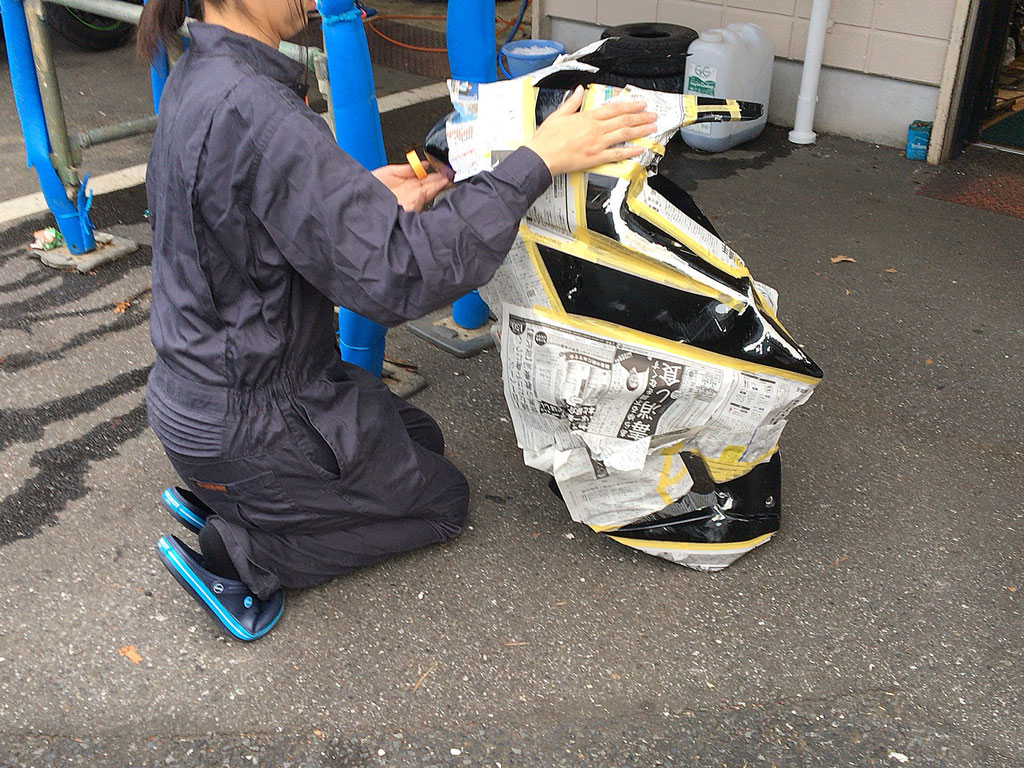 暫くしたらだいたい良い感じだっつぅので、カウルを洗って乾かして、ししまるさん初めてのマスキング。