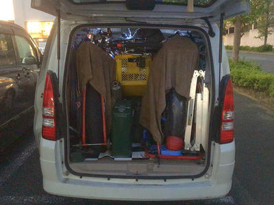 荷物が載り切らなかったら助手席も使って、ししまるさんを屋根に括り付けて行かなきゃいけないとこだったんで、これで一安心。