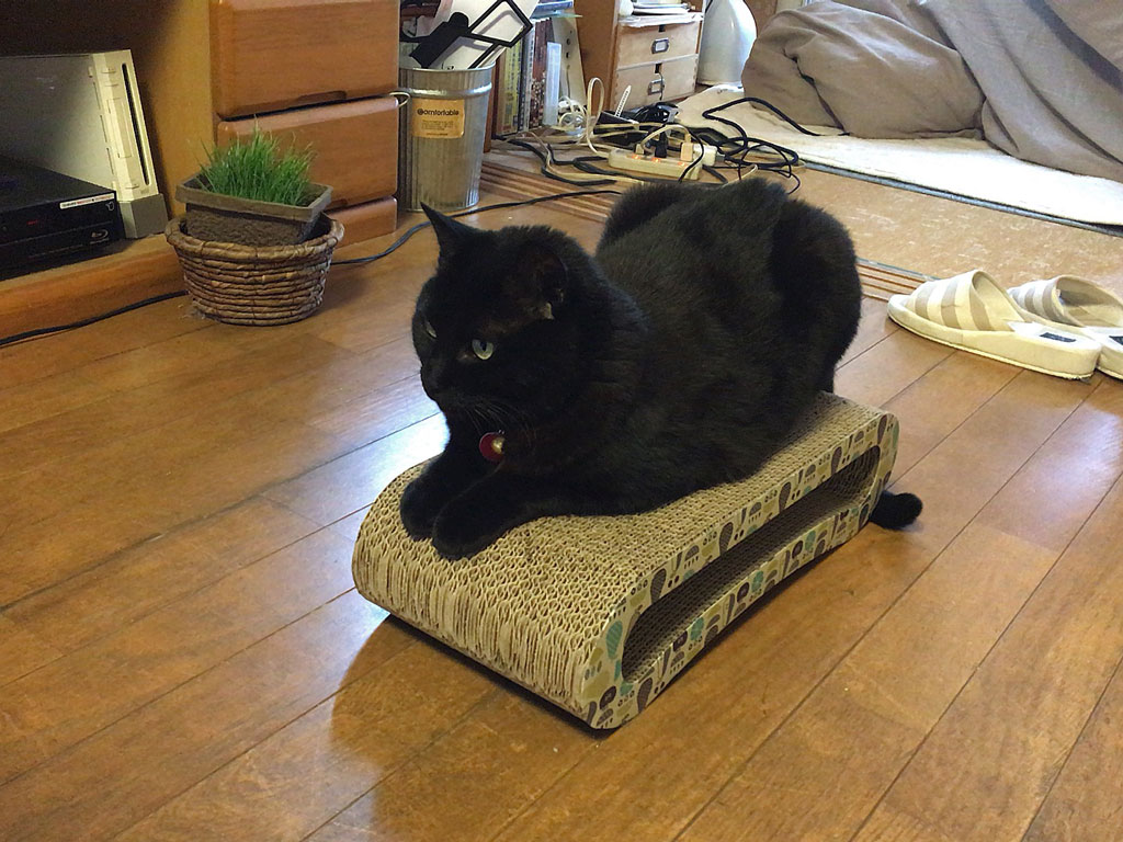 いや、この黒い生物が僕の親父殿って訳じゃなくて、実家にいる謎の黒い生物はいつも寝てばかりなのだけど、今日は近寄ってきてじゃれてみたり、部屋の中を走り回ったり、珍しいこともあるもんだ。