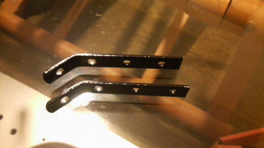 2本になったステーを適当な角度にひん曲げるんですけども、今までの経験から考えるとステーの穴が開いてる部分で曲げると極端に強度が落ちる上に塗装が剥がれてサビが浮き易くなるので曲げるなら穴が開いてないトコで曲げるのがよいと見た。