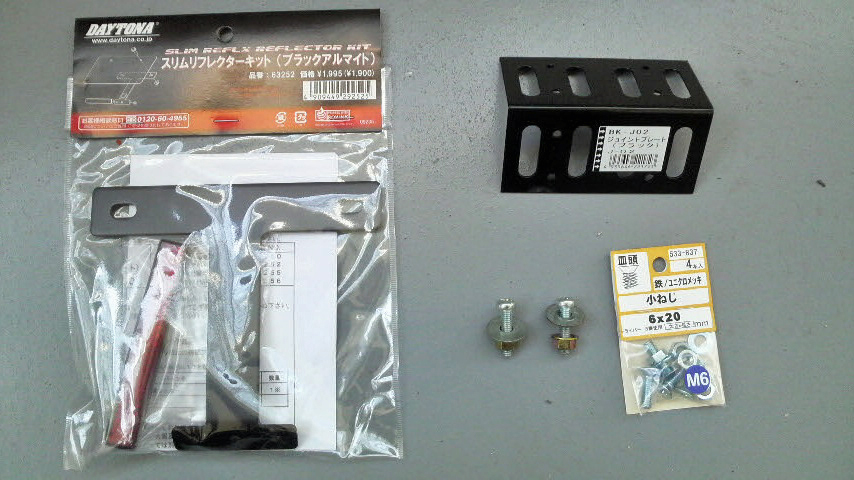 デイトナのリフレクターキットと汎用ステー、それから皿ネジと余ってたネジ。