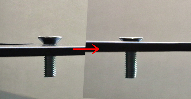 そこで、まずボルトは皿ネジを使って、リフレクターキットに6mm穴をあけたらもう少し大きいドリルの刃で貫通しないようにすり鉢状に削っとく。