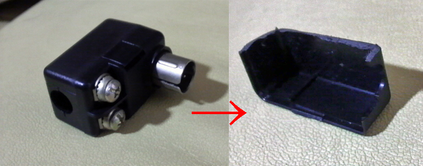 家にあるもので適当にどうにかしようと思ってそこら中ガサゴソとほじくり返してみたところ、テレビのアンテナのパーツが出て来たのでバラして切ったり削ったりで、いかにも適当な下駄を作成。