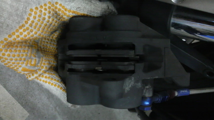 この時気が付いたんですけど、左側のキャリパーの4potのうち径の小さい方の1発が軽く固着して動かなくなってて、もう片方の径の小さい方も動きが鈍ってて固着寸前っていう。。