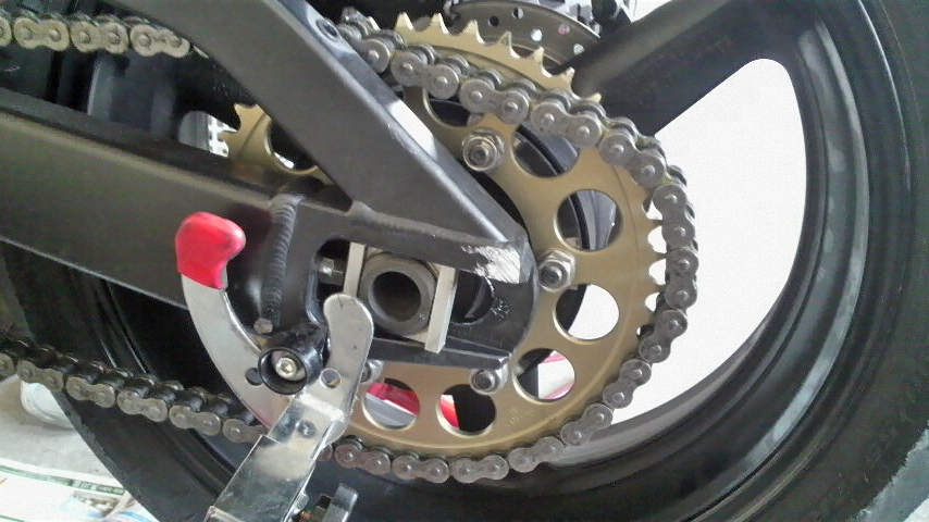 で、チェーンを張り替える前にスプロケの本締めをしておこうかな、と思ってチェーンを張ろうと思ったらば…