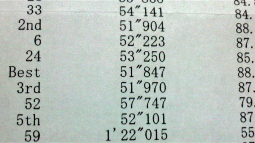 で、じゃぁ自己ベストが出たのか?っていうと、今日は自己ベストには遠く及ばない51秒847。
