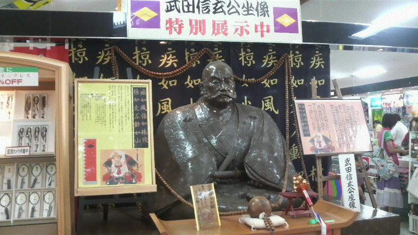 そんで何となく中に入ってみたんですけども、双葉SAの中に晴信さんの坐像が期間限定で展示されてました。