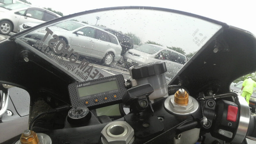 今日の予報では曇り時々晴れって感じだったんですけども、出発してすぐパラパラっと来て、常磐道に乗る頃にはサラサラと霧雨状態で、シールドと捨てバイザーの間に細かい雨が進入してシールドを締められなくなったので、守谷のSAに寄ってティッシュで拭いてから行こうと思いきや、守谷に入って暫くすると雨が本降りに…。