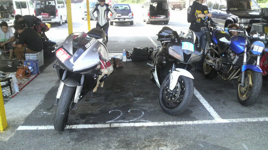 ご飯を食べて戻るとR1のリアタイヤ付近に転がってた謎の物体が切っ掛けで49秒台を出してたNSRの人と話す機会が出来た。
